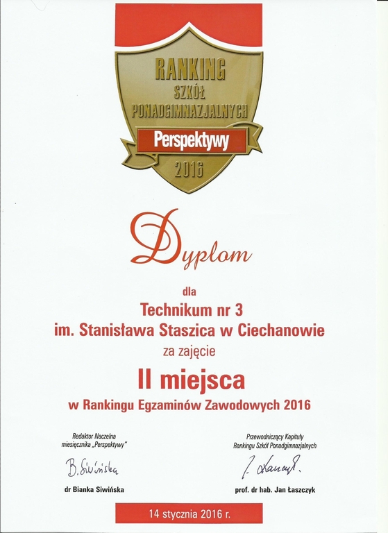 Miło nam zakomunikować, że w ostatnim rankingu „Perspektyw”, który został opublikowany 14.01.2016r., nasze Technikum nr 3 wchodzące w skład Zespołu Szkół nr 3 im. Stanisława Staszica zajęło bardzo dobre miejsca w czołówce techników na Mazowszu i w kraju w różnych kategoriach.