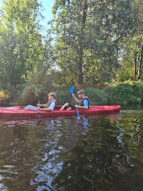 Nasi uczniowie przeżyli niezapomnianą przygodę podczas spływu kajakowego Sochocin-Bolęcin. Piękna pogoda sprzyjała aktywności na świeżym powietrzu. Słońce delikatnie muskało wodę, tworząc na niej mieniące się refleksy. Ciszę przerywał jedynie szum wiosła zanurzanego w wodzie. Na koniec dnia, przy trzaskającym ogniu, wszyscy uczniowie z apetytem zajadali się upieczonymi kiełbaskami. To był dzień pełen radości i przygody! ![]()