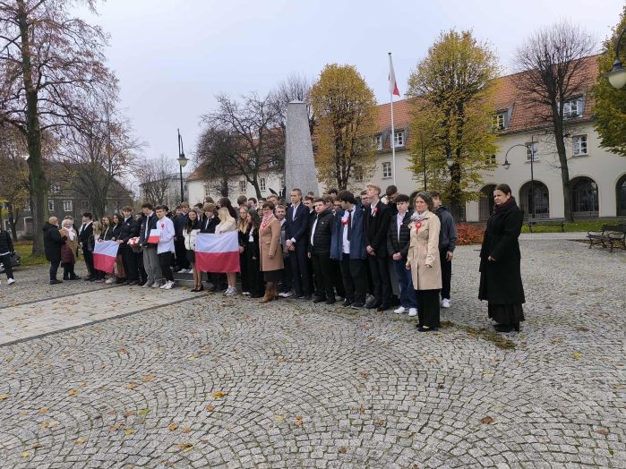 Uczniowie klas: 2 RP, 3 JT, 3 PS, 3 RR, 1 TM, 1 TS, 3 TM, 4 TM, 4 RR wraz z nauczycielami o godzinie 11:11 na Placu Józefa Piłsudskiego w Ciechanowie odśpiewali hymn Polski