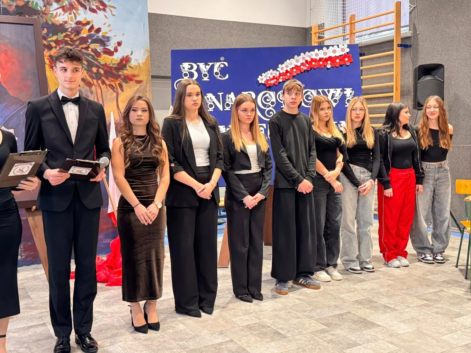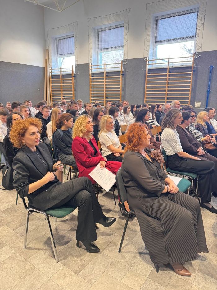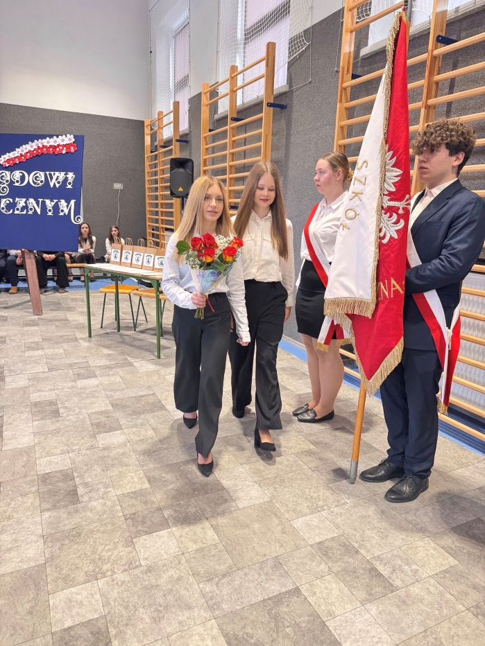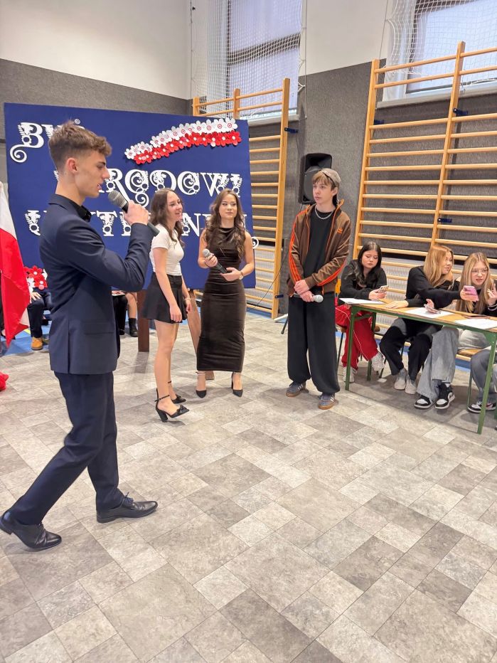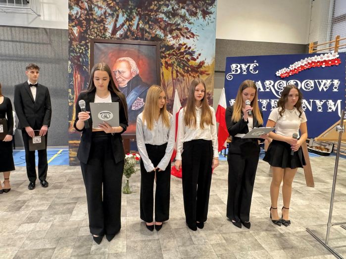 W części artystycznej młodzież zaprezentowała wiersze, piosenki, scenkę przedstawiającą rozmowę Stanisława Staszica z uczniami naszej szkoły na temat współczesnej nauki. Występy wzbogacono prezentacją multimedialną, ukazującą najważniejsze momenty biografii Patrona oraz wartości, które wyznawał.